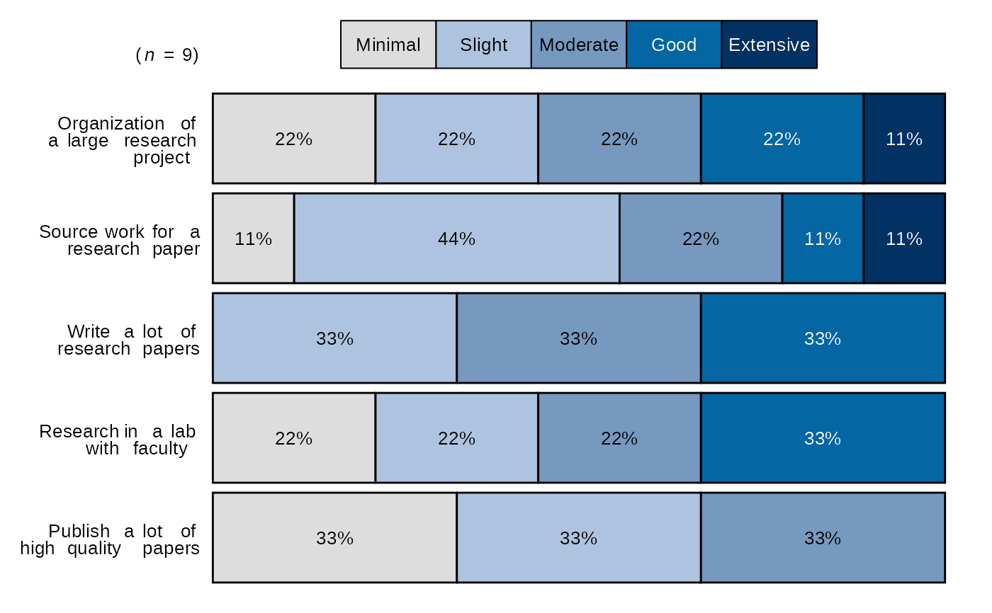 Required, a character vector of labels for the response scale, must be in the desired order, e.g. if you have a 5 item scale of minimal to extensive it should look like this: